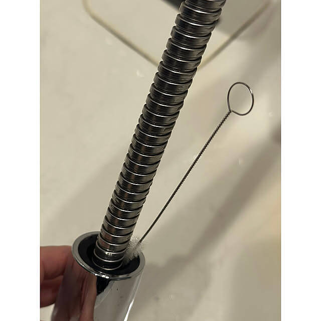 nono.0129さんは、キッチンのタッチレス水栓にあるハンドシャワーの溝をお掃除。注ぎ口洗い用の細いブラシを使って、奥の汚れをしっかり掻き出しています。普段はなかなか気づきにくい場所ですが、定期的にお手入れをしておきたいですね。細いブラシを備えておくと、何かと重宝しそうです。