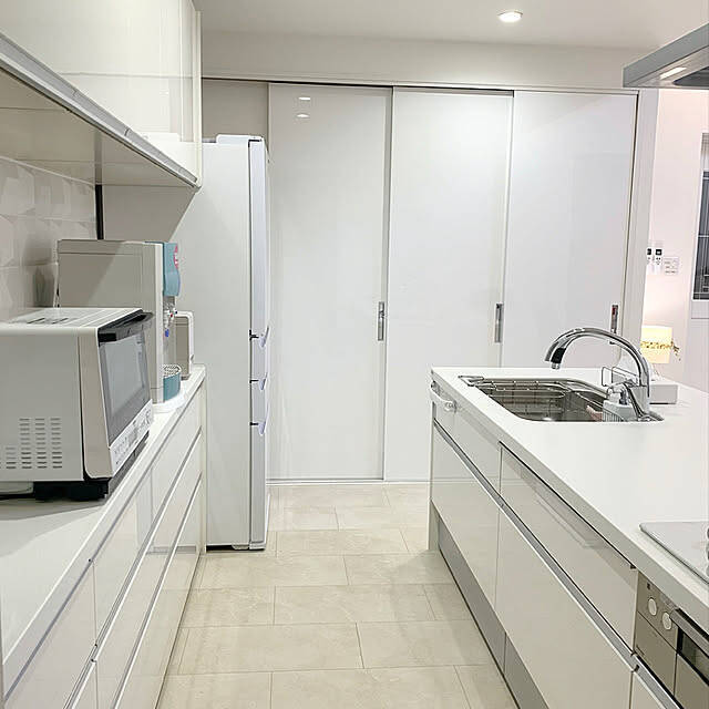 キッチンマット置くのやめました!かわいいマットっていっぱいあるけど、洗うのがめんどくさいので、拭く方が私には合っています◎