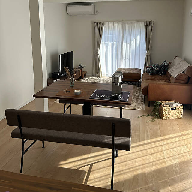 朝~昼にかけて光が入る このリビングの眺めが好きです。コーヒーを淹れて、ぼーっとする時間!