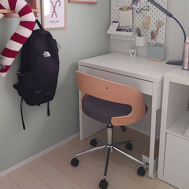 中学生のお子さんの勉強机として、IKEAのミッケシリーズのデスクを使われているmri96さん。コンパクトなデスクに、曲げ木のオフィスチェアがぴったりだったそうです。シンプルでホワイトのデスクで、集中しやすそうな空間になっています。
