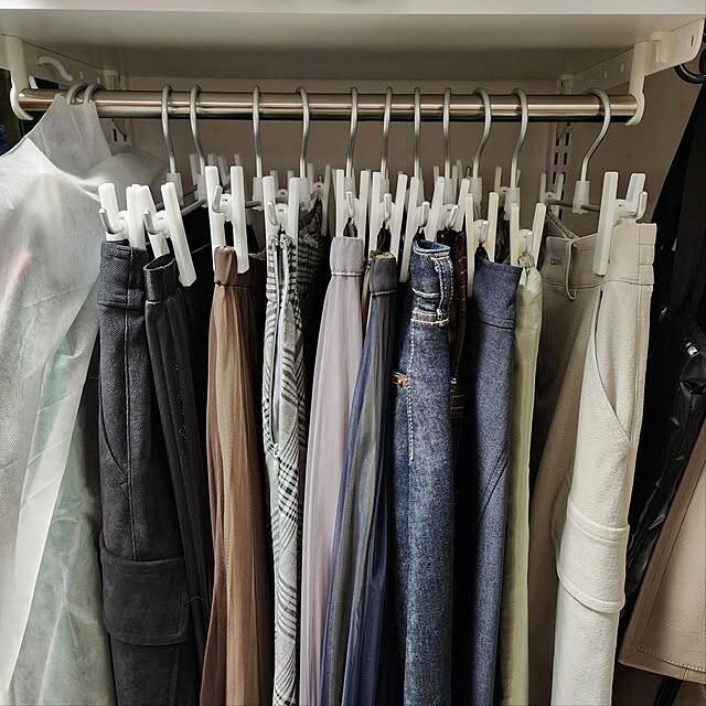 75さんはご自宅の捨て活を紹介しており、衣替えの際にクリップハンガーを整理しています。デザインを統一することで、衣服の厚みがスリムになり、クローゼットがすっきりしたそうです。整理されることで服の種類も把握しやすくなり、選ぶのが楽しくなりそうですね♪