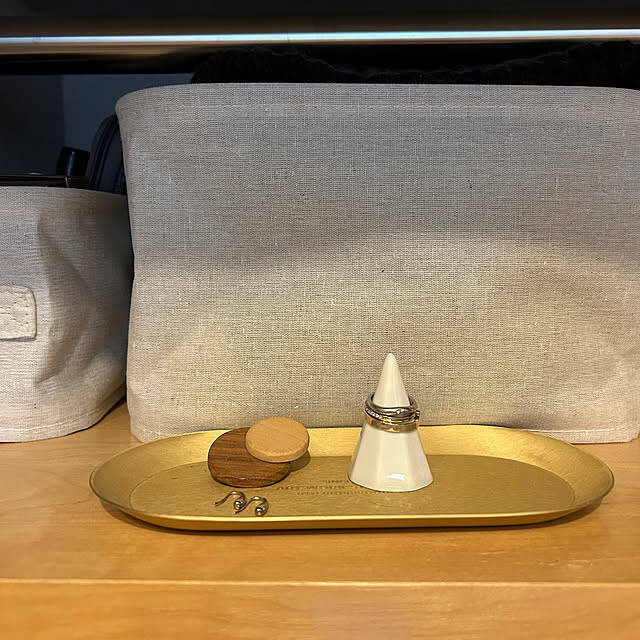セリアで売っている「盛り塩」を作るための器を、リング収納に活用されているrurirurirubyさんの実例です。シンプルで美しい器にゴールドの指輪がよく映えていますね。トレイの上に並べておくだけで、セレクトショップのような佇まいになります。