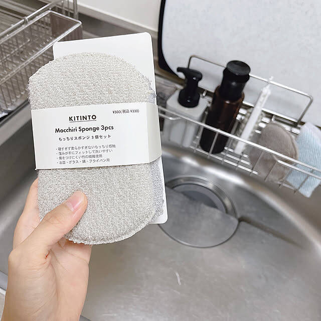 リピート買いしている、3COINSのもっちりスポンジ♪厚みがあってなかなかへタレないので、鍋やフライパン洗いのスポンジにしています!3個セットでコスパも良し子さん◎