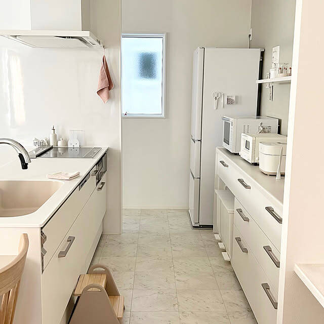 RoomClipユーザーの素敵なキッチンを紹介する「憧れのキッチン」連載。今回は、ホワイトやベージュを中心にした淡い色合いを楽しみながら、見た目の心地よさと日々の使いやすさを両立しているmoeさん宅のキッチンをご紹介します。