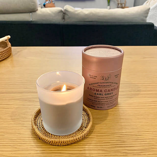スタンダードプロダクツで買ったアロマキャンドル♪お手ごろ価格¥550!なので気兼ねなく使えます。アールグレイの香りなので、おやつタイムに灯しても香りを楽しめます♪フロートガラスにミルクティー色のキャンドルがシンプルで可愛い♡でもチョコムースに見えちゃう。紙のケースもデザインがすごくおしゃれです~♡香りがほんのり。チラチラする火にほっこり。癒しタイムです♡