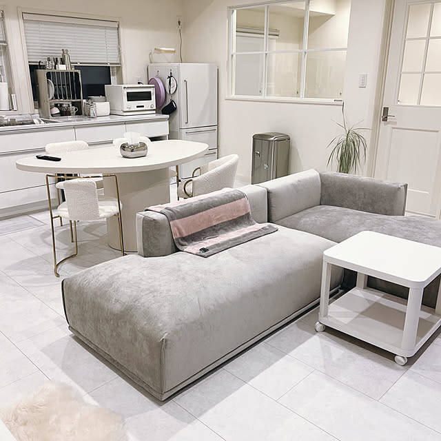 ソファは圧迫感がないけど大きめのソファが良くて背もたれ低いのを選びました! 料理してる時もテーブル使ってるときもソファにいるときもテレビが見やすい配置にしたくて(ソファ正面にテレビあります)、ソファ置くスペース狭かったけど、背もたれ低いからお気に入りのダイニングセットも見えるし、座り心地もよくてめっちゃ気に入ってます♡