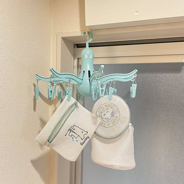 IKEAのタコさん?ピンチハンガー♪この前行った時に購入……したはず……娘の家に居ました笑 我が家は、洗濯ネット用に使用中♪新しくモスグリーンと黄色もあったんだけど、この色のほうが好きかな♡目もあって可愛い♡