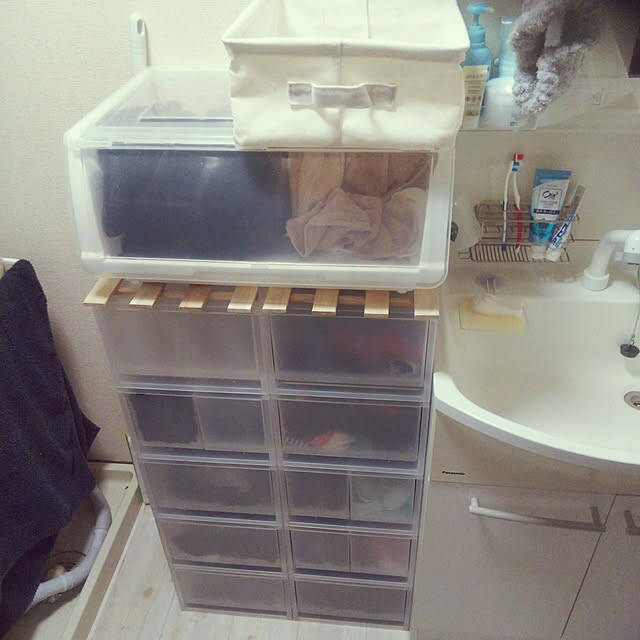 Sachiさんは、洗濯物を干した後にたたむのをやめています。下着類やタオルなど、シワの気にならない物は種類ごとの引き出しにそのまま入れるだけにしたとのことです。面倒なたたみ作業をなくすアイデアで、洗濯物を片付けやすくしていますよ。