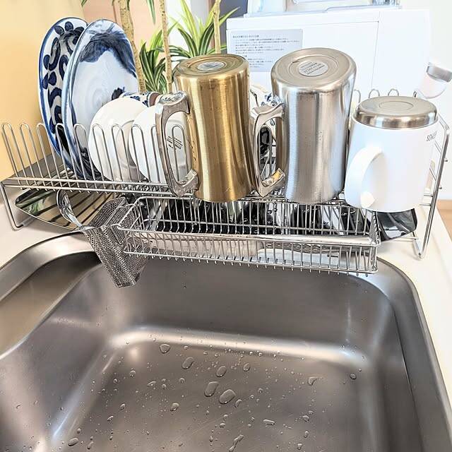 nonnonさんは下村企販の「TSUBAME水切りバスケットロングワイドタイプ」を愛用されているそうです。本体の枠組みがU字になっており、食器などが傷つきにくい作りになっています。nonnonさんも、大皿やまな板が両端に立てられてコップなどもかけられるところにメリットを感じているそうですよ