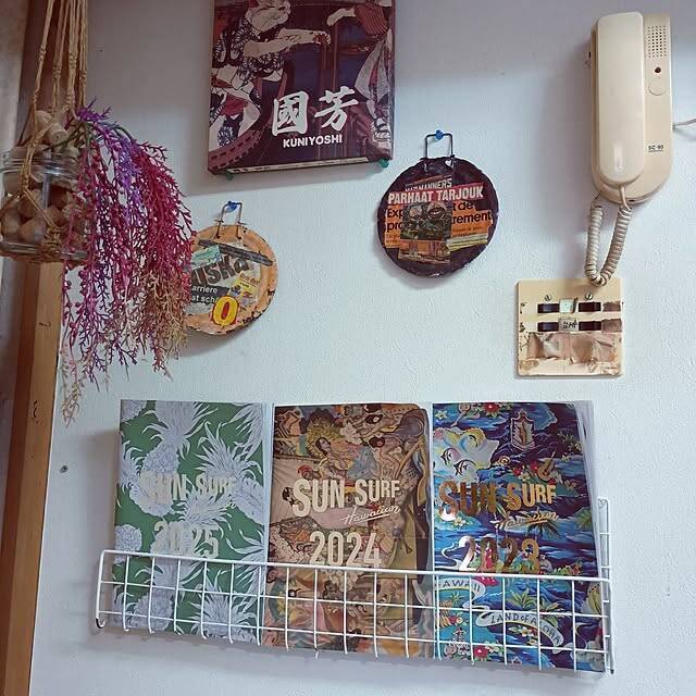 maruwataroさんは、100均のワイヤーネットでマガジンラックを作成されました。J字に折り曲げて、壁に設置すれば完成です。お気に入りの本を3冊並べてディスプレイされていますよ。見せる収納がお好きな方にもおすすめです。