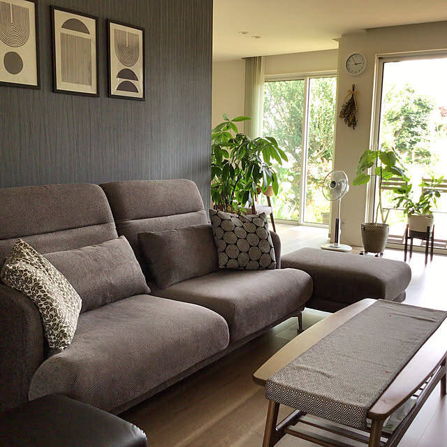 houenさんは、リビングダイニングの中心にパキラを置いています。パキラは、手のひらのように大きく開いた葉の形が特徴の観葉植物。グレー系でシックにまとめたインテリアに、元気で爽やかな雰囲気をプラスしてくれますね。直射日光が当たらない、窓から少し離れた場所に置くのがベストだそうですよ。