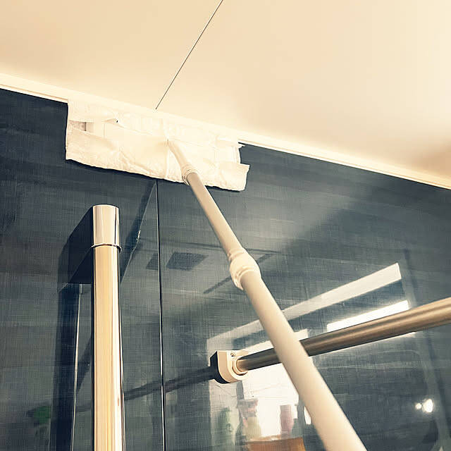 nanさんはフローリングの床掃除に便利なクイックルワイパーを、お風呂の壁掃除にも活用されていました。使い方は床掃除同様に、お掃除シートをセットして拭くだけ。長いワイパーなら手の届かない高い場所も楽に拭き掃除ができます。シートなので水気が残らないのもうれしいですね。