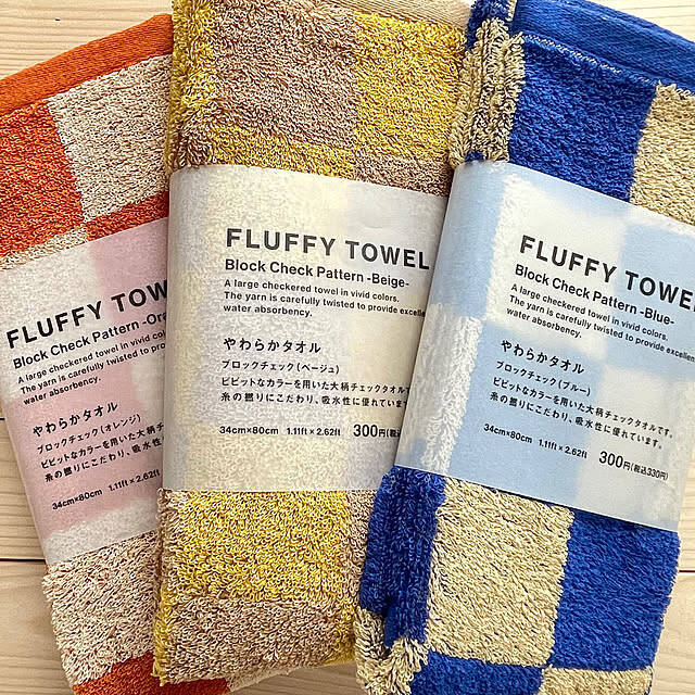 1年のはじまりなのでタオルを新調するタイミングかな……スタンダードプロダクツで年末に購入した『FLUFFY TOWEL』のブロックチェック柄のタオル。大柄なのが結構いい、やわらかタオルだから触り心地もいいですね◎