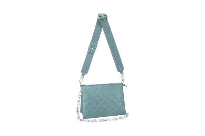柔らかなラムレザーを使用し、モノグラム・パターンをエンボス加工で施してふっくらとしたクッションのような風合いに仕上げています。取外し可能なチェーンで、クラッチバッグやショルダーバッグ、ベルトバッグなどさまざまな持ち方を楽しめるのも魅力です。