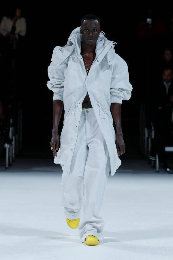今回のコレクションでは、アメリカンスポーツウエアとワークウエアをコンテンポラリーなデイウエアというレンズを通して見ており、個人主義と自由の感覚が表現されています。ファブリックには革新的な金属糸が用いられ、ガーメントのシェイプが巧みに作られています。プロポーションや構造といったアイデアに挑戦し、ウエアは押しつぶされたり、ぺちゃんこにされたりしています。