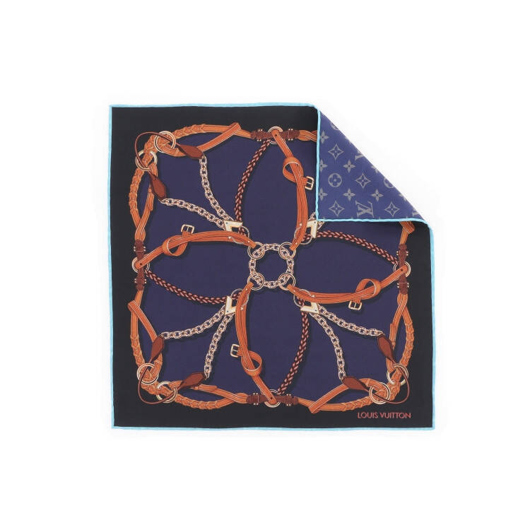 2色展開の「カレ バンダナ・ハンドルミー」は、表面にはバッグのストラップやチェーンで象ったモノグラム・フラワーを、裏面にはメゾンのアイコニックなモノグラム・パターンを散りばめた2WAYで使えるアイテム。