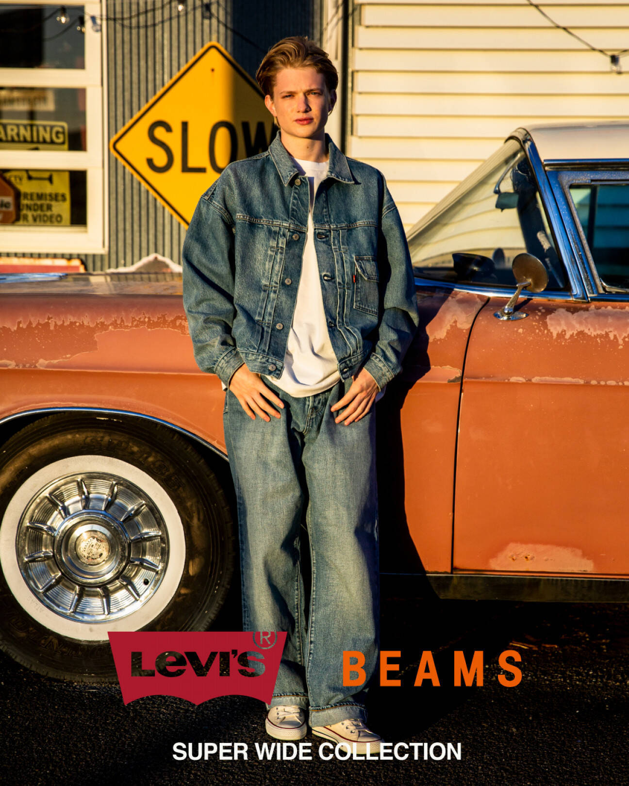 待望の第3弾『SUPER WIDE COLLECTION』はタイトルの通り、元のモデルを横にワイドに引き伸ばしたBEAMSを象徴するワイドシルエットで、『Levi’s(R) x BEAMS SUPER WIDE TRUCKER』、『Levi’s(R) x BEAMS SUPER WIDE JEAN』、Tシャツの3型を展開します。