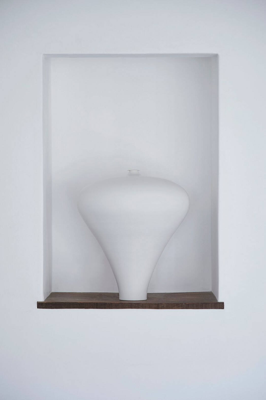 空間に溶け込むように静謐でありながら、緊張感あふれる力強さをもつ陶芸家・黒田泰蔵の白磁。
