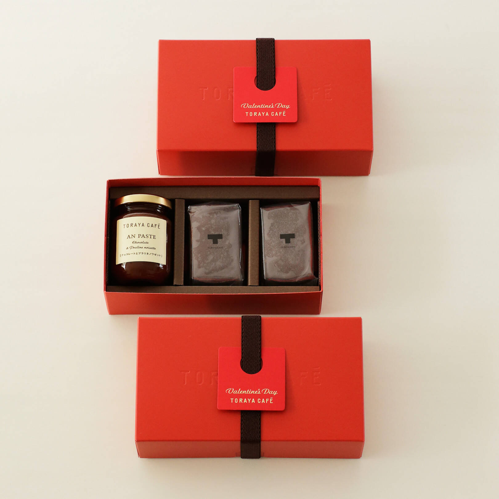 バレンタインデー用には、赤いギフトボックスとバレンタイン限定のタグが用意される。季節限定のあんペースト「チョコレートとプラリネノワゼット」との詰め合わせがおすすめ。ホワイトデーにちなんだギフトボックスは、内容により茶色もしくはクリーム色になる他、ホワイトデー限定のタグも登場する。取扱い店舗は、あんスタンド北青山店、あんスタンド新宿店、トラヤカフェ青山店、オンラインショップにて。