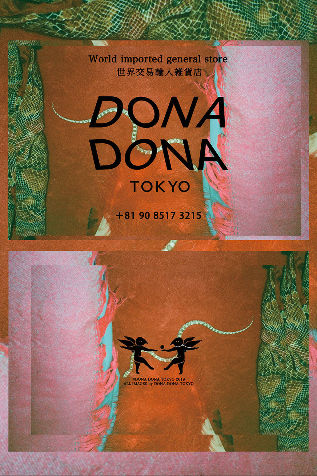 ショップの名には、「ドナドナ」という民謡の歌詞に登場する売られていく子牛の様子の意が重ねられている。店内には、世界を旅してeriと越智康貴自らの手で一つひとつ拾い上げた様々なアイテムたちがところ狭しと並ぶ。