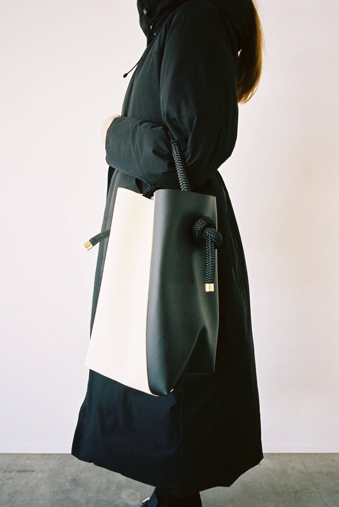 ヨットロープバッグは、英国レザープラス(LEATHERPLUS)のリサイクルレザーをボディに用いた、エコなうえ質感、重量、耐久性にも優れたサスティナブルなバッグ。