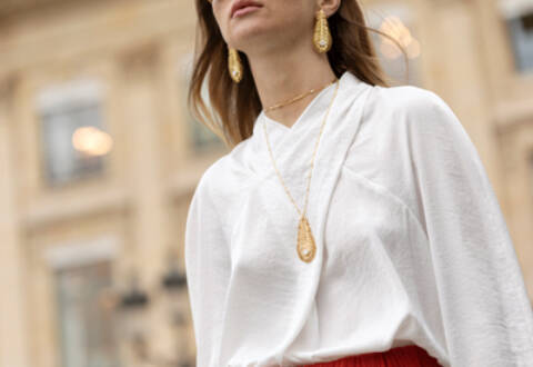 コレクションに新たに加わった4つのジュエリー、繊細なチェーンにダイヤモンドが施されたロングネックレス、大振りなイヤリングとリング、そしてクラスプ(留め具)のないブレスレットは、ブシュロンのアトリエで開発されたエナメルと特別な組み立て技術が用いられています。羽根の一つひとつのパーツが動き、本物のクジャクの羽根のようなしなやかさと軽さを表現しています。ブシュロンのジェモロジストにより細心の注意を払い選ばれたダイヤモンドにはローズカットが施され、モチーフの中央で美しい輝きを放ちます。肌にそっと沿うこれらのジュエリーは、身に着ける女性の魅力をさらに引き立てます。