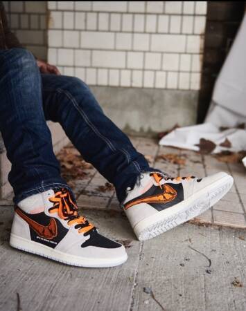 今回発売された「FATAL ORANGE AJ1 HIGH NEUTRAL GREY」は、AIR JORDAN 1 RETRO HIGH OG "NEUTRAL GREY"をベースに、STILLALIVE(スティルアライブ)オリジナルのオレンジを基調としたスカルボーンのスウォッシュを組み込んだ一足。