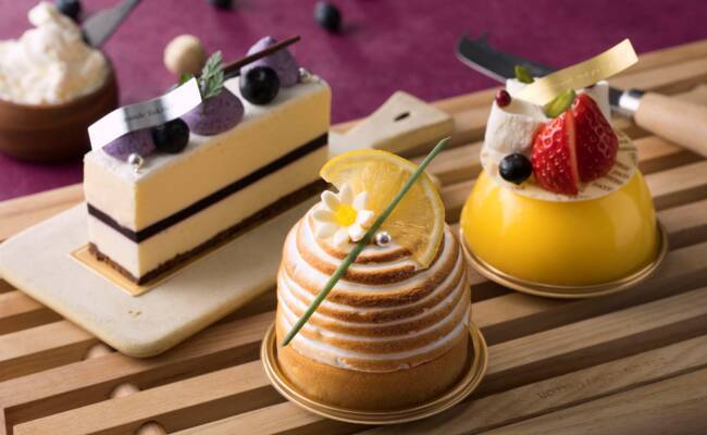 タルト生地にチーズのアパレイユを入れて焼き上げ、その上にはレモンクリームを閉じ込めたレアチーズムースを重ね、イタリアンメレンゲで覆いました。レモンの酸味とチーズのコクが奏でるマリアージュをお楽しみください。