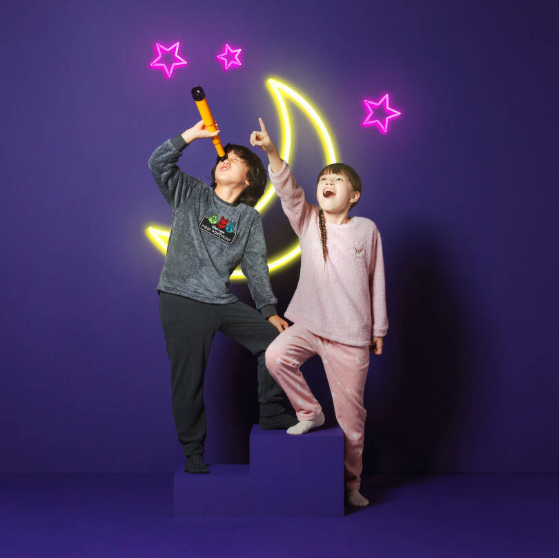 今回発売されるフリースセットは、「Night Explorer(夜の冒険者)」をテーマに、大好きなポケモンと一緒に夜の街を冒険したい、という思いが表現されたコレクション。夜をイメージしたネオン調のデザインに、星や月のモチーフがあしらわれている。