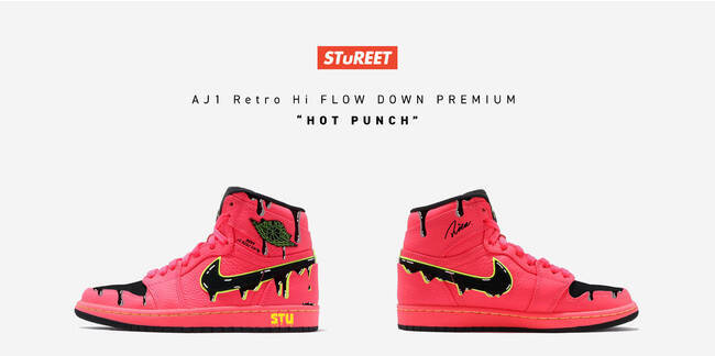 2019年に国外限定で発売されたWMNS AIR JORDAN 1 RETRO PREMIUM "Hot Punch"をベースに、STuREET(スチュリート)」のカスタムデザインの中でも人気の高いFLOW DOWNでリメイク。先日発売された2021年モデルと同じく、サイドには、"2020年世界が激震に耐え抜き今尚続く脅威に対しそれでも歩み続けよう。"という気持ちを込めたメッセージ「2021 A NEW WAY」の文字をデザイナーRita自ら手書きで想いを込めて書き下ろしています。