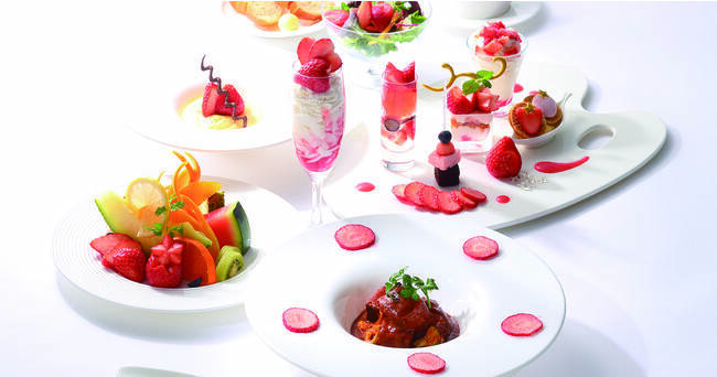 ●アペリティフ ●春のいちごの生春巻き ●春のいちごのスープ ●牛肉の煮込み 春のいちごとデミグラのソース ●フルーツ盛り合わせ ●HOTデザート 春のいちごのシブースト ●春のいちごを楽しむパレット ●冷菓 ●コーヒーまたは紅茶またはカフェオレ