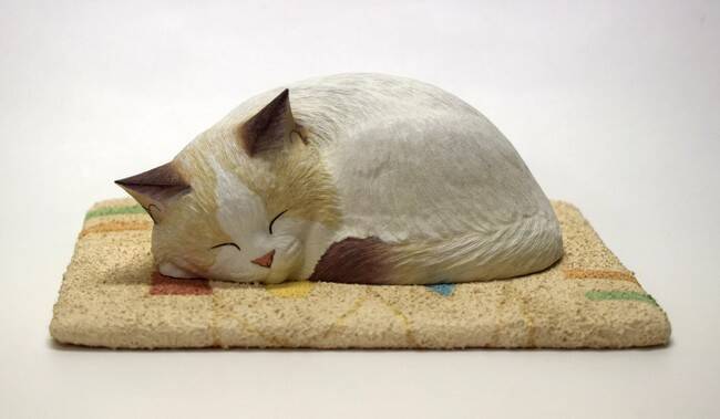 西誠人「オチツク~ニャ」木彫 9.5×20.5×10.5cm 税込41万8,000円