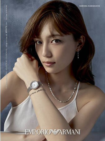 川口さんが広告で着用していた新作モデルのウォッチ&ジュエリーが、待望の販売をスタートしました。2021年春夏新作コレクションは、全国のエンポリオ アルマーニ直営店及びオフィシャルサイトでご購入いただけます。