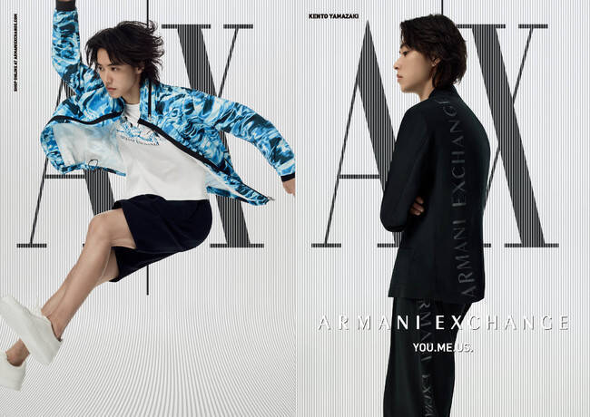 新しく公開されたビジュアルは、夏らしいブルーの爽やかなブルゾンを着用してジャンプしている躍動感あふれるものから、スーツを纏いまっすぐとカメラのレンズを見据えた力強い山崎賢人さんの表情を捉えたもの、ナショナル ジオグラフィックとコラボレーションした動物プリントのパーカーを着用しリラックスした表情を見せたものまで、山崎賢人さんとA|Xの最新コレクションの魅力を最大限に引き出す仕上がりになっています。