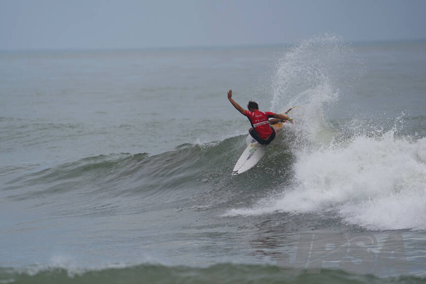 会場のコンディションは晴れ時々、曇り。午前中は時折激しい雨に見舞われた。小潮ということもあり、大会はコシハラサイズの波をキープしたままファイナルまで進行。ヒート時間25分で、波数はあるがショルダーの張らない波が多数。エンドセクションで一発技を見せる波が多かった。