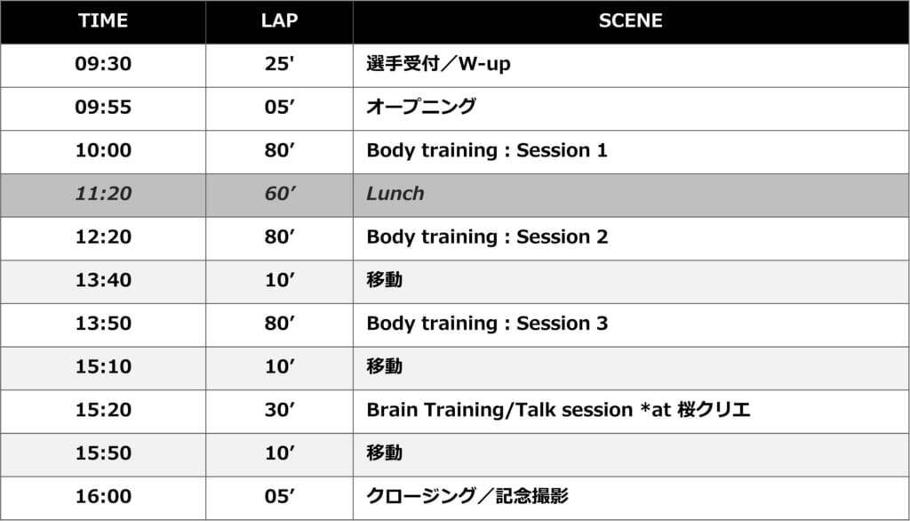 今回のコーチ陣は、前回に引き続きヘッドコーチとして本プロジェクト代表 宮澤 克明(みやざわ かつあき)、ヤンヤ・ガンブレットのコーチを務めるロマン・クライニク氏、フィジカルトレーナーの竹口 正範(たけぐち まさのり)氏に加え、現役選手からはリードワールドカップ王者である樋口 純裕(ひぐち まさひろ)選手、本間 大晴(ほんま たいせい)選手を招聘。