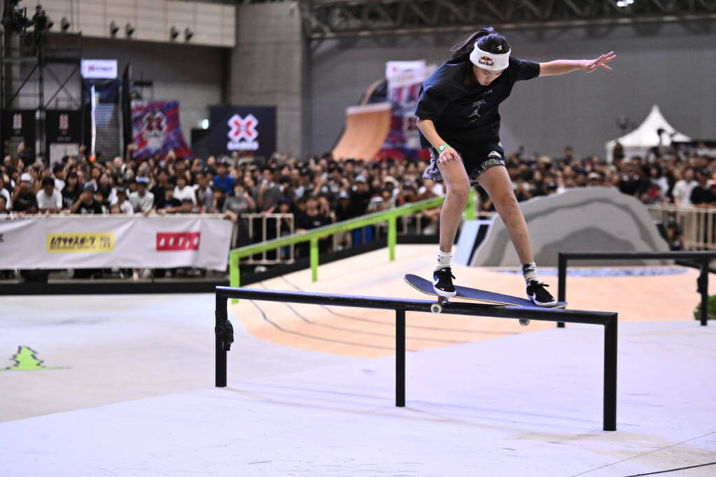 今回は優勝候補の西矢椛、織田夢海は直前の怪我により出場を回避することになった中で、競われた女子ストリートの決勝。実際に今回のストリートコースはパリオリンピック金メダリストの吉沢恋が「コースが難しい」と公言するほど、女子スケーターにとってかなりハイレベルなレイアウトであったことで、吉沢だけでなく東京オリンピック銅メダリストの中山楓奈らはラインの組み立てに苦戦していた印象が見受けられ、各選手練習からルーティーンを組むのにライダーが苦労していたように思えた。