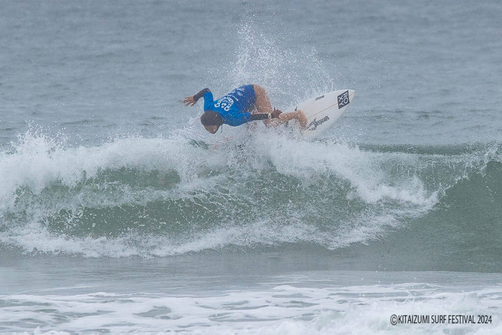 大会初日は台風のうねりが入り頭サイズの波がブレイクしていたが、最終日に向けて波のサイズは落ち着き腹から胸前後のサイズに。それでも、北泉のポテンシャルの高さを感じ申し分のない波のコンディションで試合が行われた。