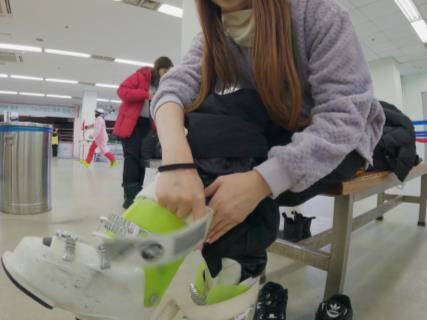 靴を履いてるシーンやロッカーにGoProを置いて撮るシーン、リフトに乗るシーンなどの様子も収めてVlog風に。さらに、リフトに乗るときは延長ポールで自撮りをすれば一面の雪景色に映える画が撮れる。