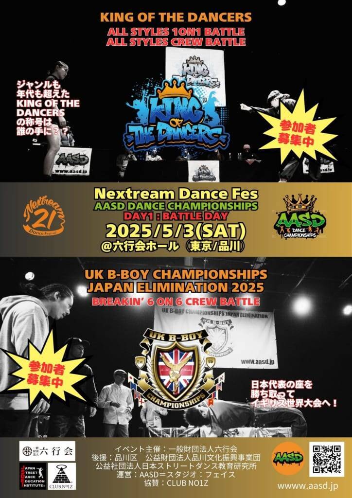 Nextream21 Dance Fesの一環として、AASD DANCE CHAMPIONSHIPが開催され、その初日となるDAY1のイベントにて、UK B-BOY CHAMPIONSHIPS JAPAN ELIMINATION 2025とKing Of The Dancersが同時に開催!