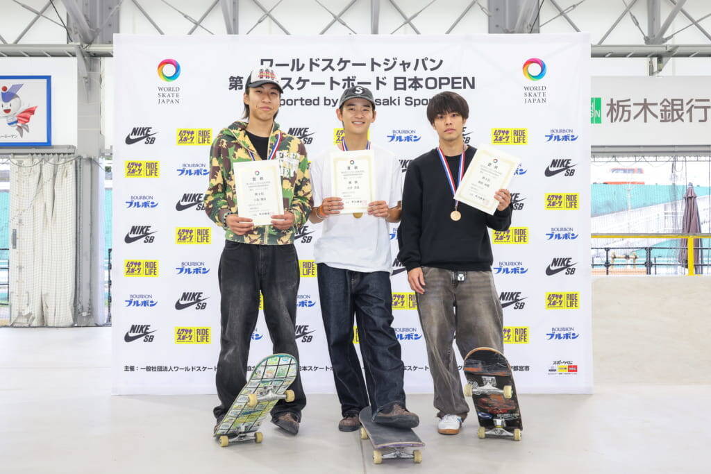 栃木県宇都宮市に新設された「アークタウン宇都宮」内スケートパークで開催された「ワールドスケートジャパン第4回日本OPEN supported by Murasaki Sports」。ストリート男子優勝は白井空良、2位に八島璃央、3位に根附海龍となった。