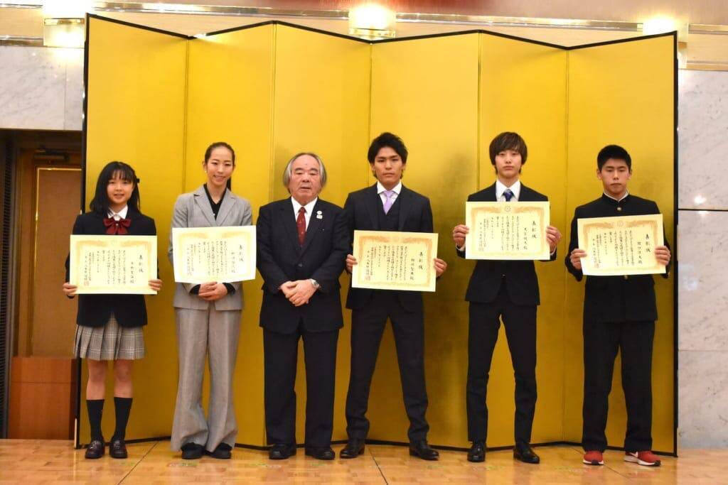 楢崎智亜、野口のほかは、ユースから天笠颯太(⽇本⼤学)、関⼝準太(真岡市⽴真岡中学校)、平野夏海(国⼠舘⾼等学校)の3名が表彰されている。