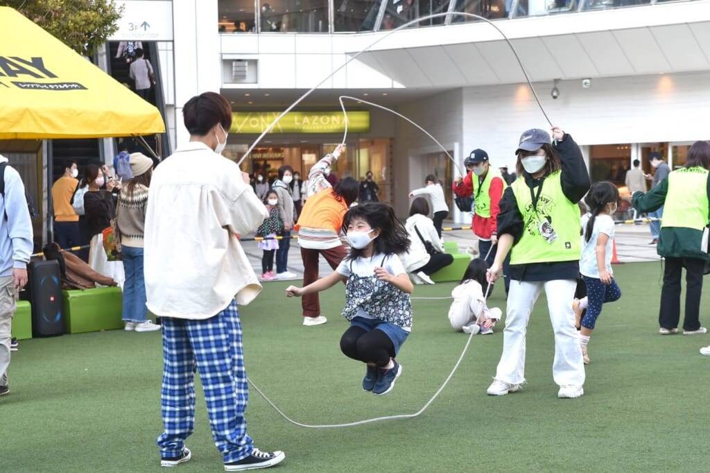 ダブルダッチ体験型のイベント「レッツプレイ ダブルダッチ」。10年以上の歴史を持つこのイベントには、毎年老若男女問わず様々な参加者がダブルダッチを楽しむ。子どもの手を引くインストラクターや保護者のにこやかな表情が印象的だった。