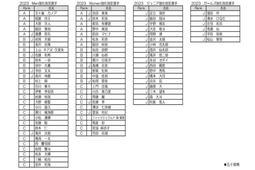 <2023 強化指定選手、ジュニア強化指定選手選考基準>