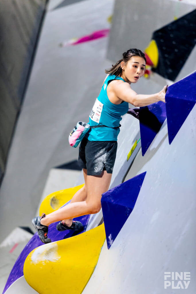 大会前には 「国内の選考大会があまり得意ではなく、プレッシャーであまりいい動きが出来たことがない。今年は楽しんで自分の存在感やスタイルを見せられたらいいなと思います。」と語っていたが、第1課題から持ち前の身長、手足の長さを活かして完登でスタート。
