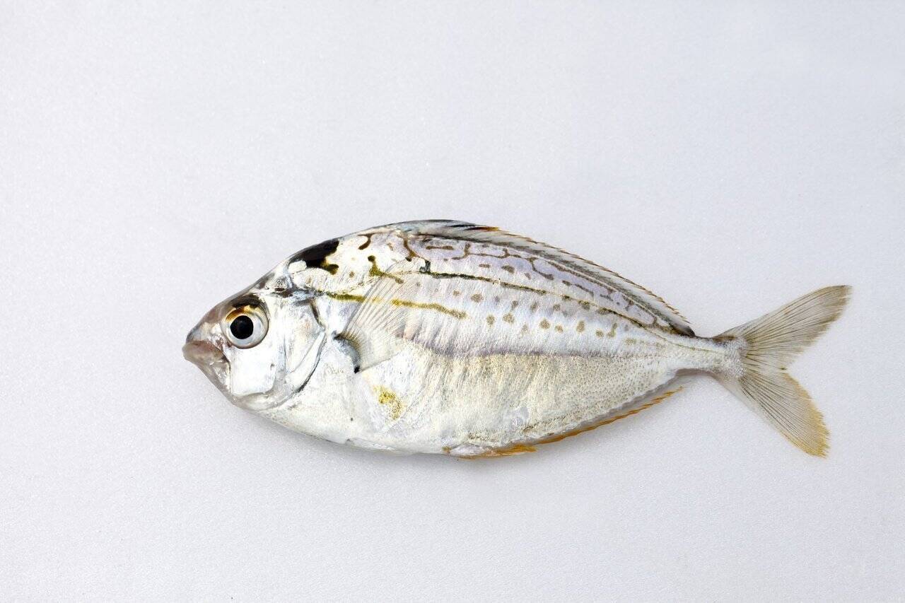 体表は銀色ですが背びれ、尻びれ、尾びれは黄色く、口が小さいのが特徴です。