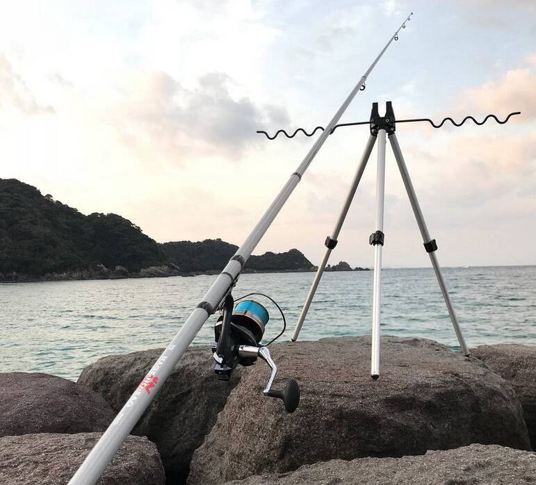 防波堤やサーフなどの釣り場でよく見かけるのが、釣り竿を立てかけている三脚やロッドスタンドです。