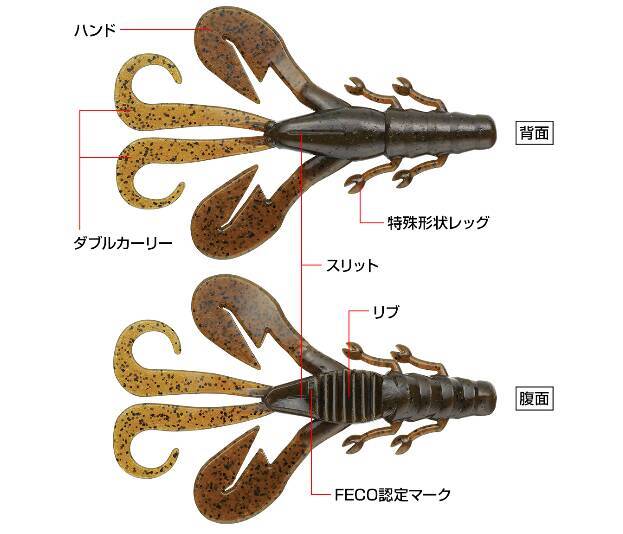 このボディの薄さが、ウィードやカバーの隙間へのすり抜けを助長し、すり抜けにスピードが乗るからこそ、カーリーテールやハンドがよりアクションすることにつながります。
