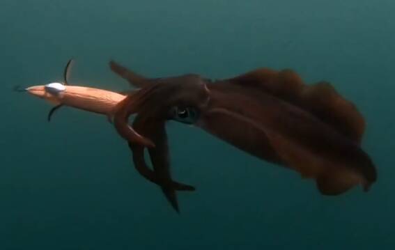アオリイカにとって、凝視している対象のシルエットが変わらないことは、抱き付くに値する要素なのかもしれません。