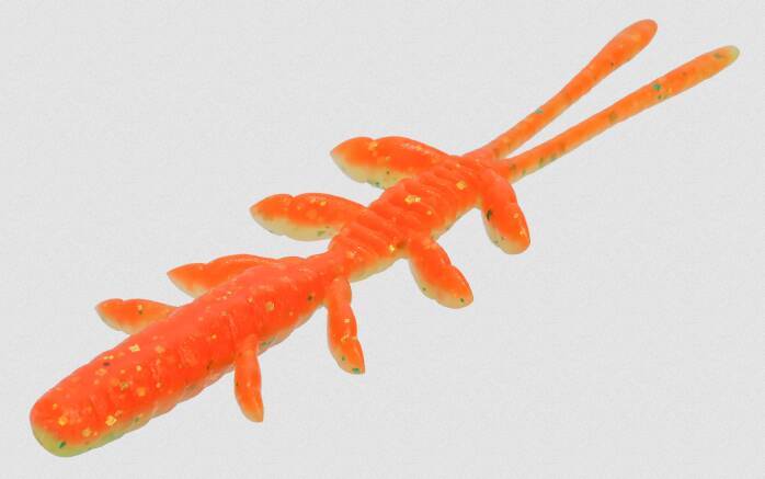 全体的なフォルムを見ると、スプリットテール系の細身ワームといえますが、甲殻類にも魚にも見えてしまうのが特徴的。